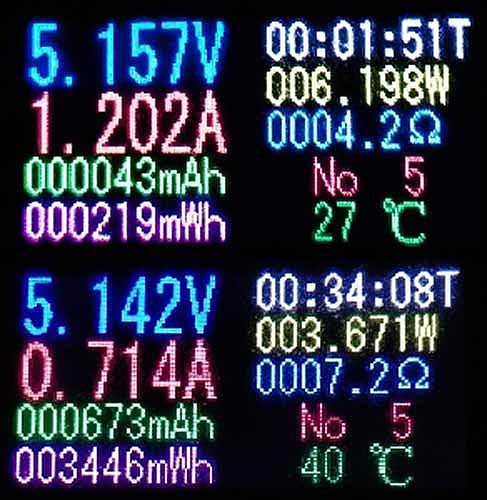 Собственно, никаких быстрых зарядок плата не поддерживает, потребляет чуть больше чем 1А, но есть нюанс — примерно каждые 10 секунд сила тока падает до 0.7-0.9А.