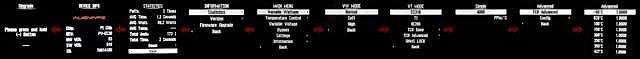 • Information — Statistics: Puffs (подсчет количества затяжек), AVG Time (среднее время затяжки), AVG Watt (среднее значение используемой мощности), AVG Temp (средняя используемая температура), Total Joule (всего Джоулей выделено, это типа вольты считает, хз зачем оно вообще надо лол), Total Time (общее время работы), Reset (сброс), Back (назад);