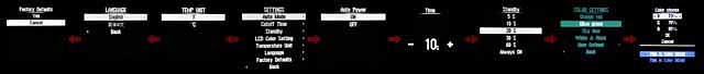 • LCD Color Setting — таки вот та фишечка основная - настройка цветовой схемы! Помимо заготовленных пресетов (Orange red, Olive green, Sku blue, White & Black) есть ещё и ручная настройка цвета интерфейса.