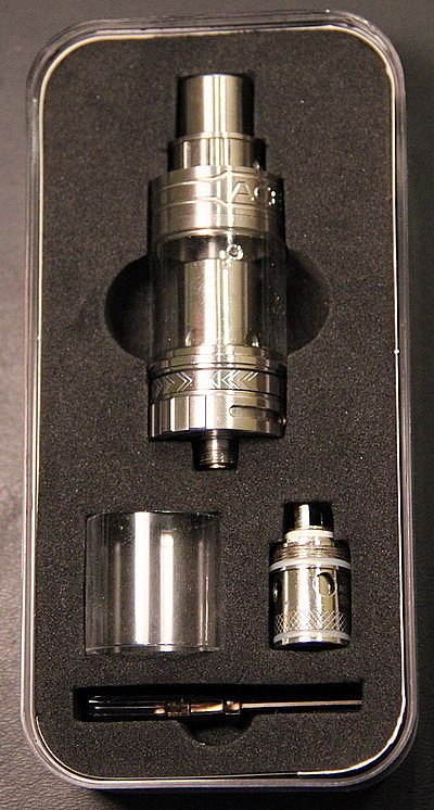 В комплектацию в данном случае входят: сам бак, сменное стекло, необслуживаемый испаритель и отверточка, если убрать поролоновую прослойку, то можно обнаружить еще вату, спирали и дополнительные оринги. Комплектация отличная, есть все необходимое чтобы начать использовать бак.