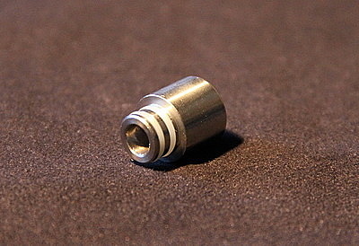 Сверху бака расположен комплектный металлический 510-ый дрип-тип, который держится на двух уплотнительных кольцах. При нагревании бака, дрип тип может довольно сильно нагреваться. Его можно поменять на свой делриновый.
