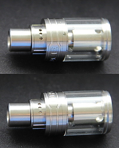 Далее идет кольцо регулировки дополнительного обдува воздуха, для охлаждения пара, насыщения его кислородом. Его можно регулировать при помощи открытия/закрытия трех отверстий поворотом кольца. Однако открытие этих отверстий уменьшает количество получаемого вкуса, но зато охлаждается пар.