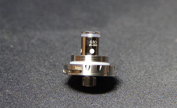 Первый имеет сопротивление в 0,5 Ом и изначально установлен в бакомайзер. На корпусе нанесены параметры работы, от 25 Вт до 30 Вт. Сверху есть сетка, которая не дает жидкости лететь в рот. Для подачи жидкости есть четыре небольших отверстия. Для продления срока службы испарителя советую использовать жидкости 50 на 50.