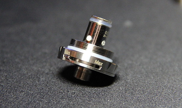 Купол испарительной камеры имеет шесть небольших отверстий для подачи жидкости и уже по этим отверстиям ясно, что с данным бакомайзеров следует использовать традиционный жидкости, такие как 50 % PG на 50 % VG.