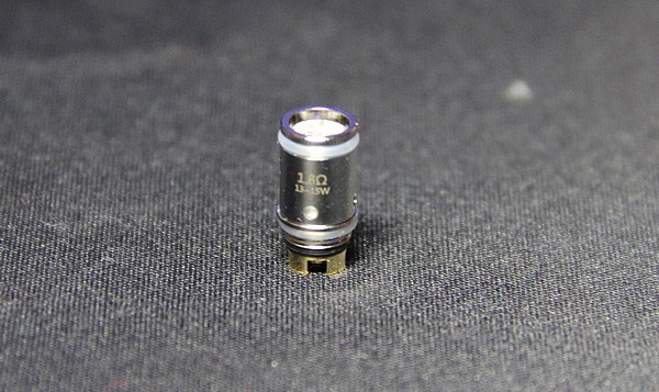 Второй испаритель имеет сопротивление в 1,8 Ом и отверстия для подачи жидкости уже меньше. Рекомендуемая мощность парения от 13 Вт до 15 Вт. Следовательно, данный испаритель подходит для тугой затяжки. Он будет экономно расходовать как жидкость, так и аккумулятор батарейного блока. Испаритель также имеет проставку в виде сетки.
