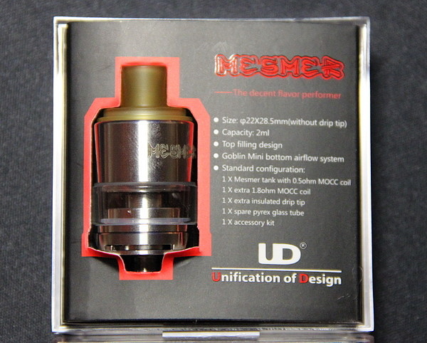 UD Mesmer-DX Tank – это бакомайзер, работающий только на необслуживаемых, сменных испарителях. Соответственно, если вы не желаете заморачиваться с намотками, то данный бакомайзер можно рассматривать, как вариант для выбора. Устройство привлекает качественной сборкой, известной компанией-производителем и хорошей комплектацией. Также устройство подойдет любителям тугих затяжек, так как данный бак, при установке сменного испарителя на 1,8 Ома можно использовать на аналоговой затяжке.
