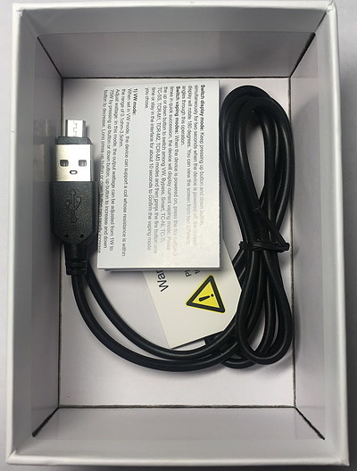Открыв коробку внутри нас встречает компактный и слегка угловатый боксмод, под которым находятся кабель для зарядки и обновления прошивки micro USB и мануал, который поможет разобраться во всех тонкостях и хитростях данного аппарата, но что странно он только на английском языке, хотя всегда инструкции от Eleaf были и на русском.