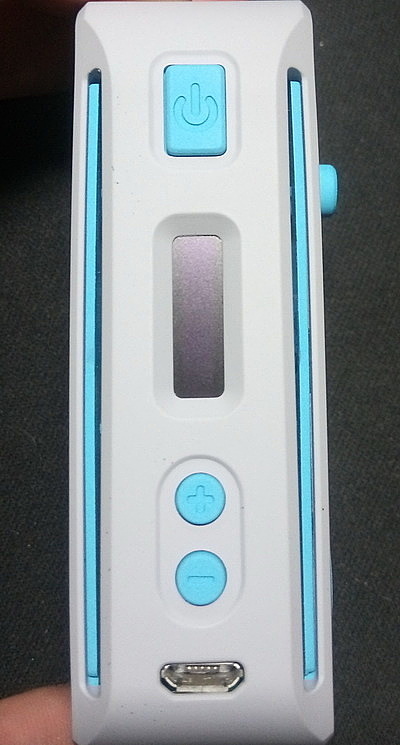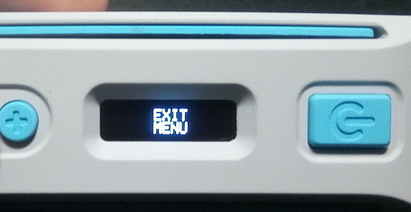На лицевой панели: кнопка «fire», кнопки управления «+» и «-», отверстия для зарядки аккумулятора и экран. Экран очень яркий и хорошо утоплен в корпус. В данном боксмоде его сделали маленьким, чтобы его было сложнее разбить об какой-нибудь угол.