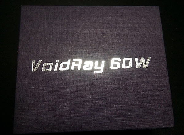 Устройство упаковано в красивую синюю упаковку. На лицевой стороне изображено название «VoidRay 60W».