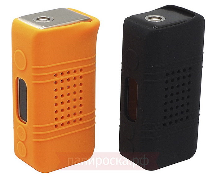 Устройство поставляется в красивой оранжевой упаковке. На лицевой стороне расположено изображение устройства и его название. С торца имеется штрих код для проверки устройства на оригинальность, сайт производителя и цвет. Боксмод поступает в двух цветах: стальном и черном.