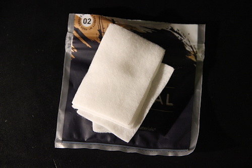 Cotton Blend D1. Внутри упаковки есть 4 листа органического хлопка марки Pima. В отличие от классического японского хлопка, Cotton Blend проходил специальную очистку и также имеет в составе целлюлозу. Благодаря плотности 1 его не надо пушить, чтобы увеличить впитываемость. Я не сильно заметил разницу при парении на Cotton Blend D1 и Japanese Organic Cotton, на обоих материалах парение было комфортным, но количество впитываемой жидкости было больше в Cotton Blend D1.