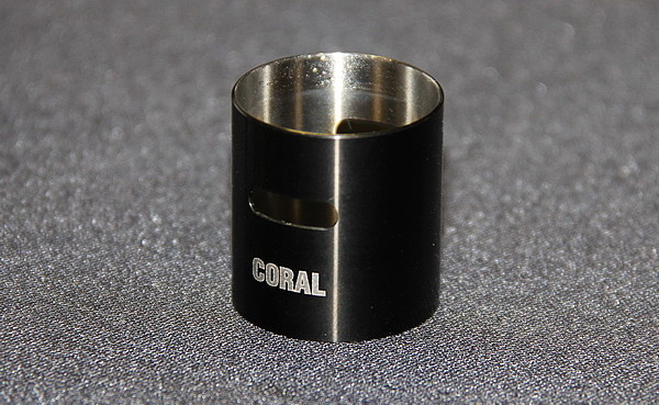В качестве атомайзера для дрипа тут установлен Coral RDA. Это сквонк дрипка, которая очень проста в исполнении и использовании. Не стоит ждать от нее супербольших облаков пара и море вкуса. Вкус в ней присутствует и при установке комплектных спиралей я посоветую наполовину перекрыть обдув, тогда вкуса станет больше. Если вы устанавливаете маломощные спирали с быстрой инертностью, то для большей вкусопередачи просто необходимо уменьшать количество воздуха.
