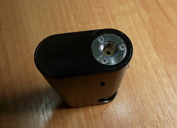 Сверху находится 510 коннектор с плюсовым контактом, который также имеет отверстие. Также на верхней части есть надпись «DRIPMOD»