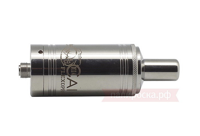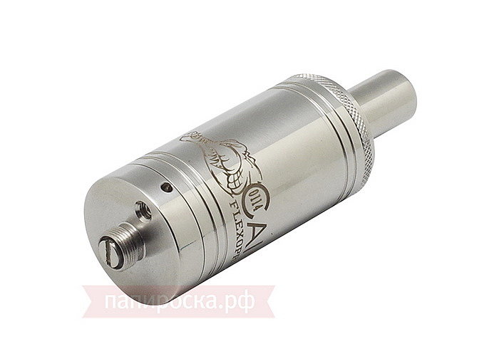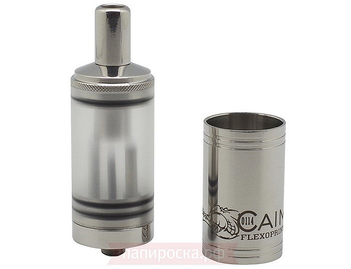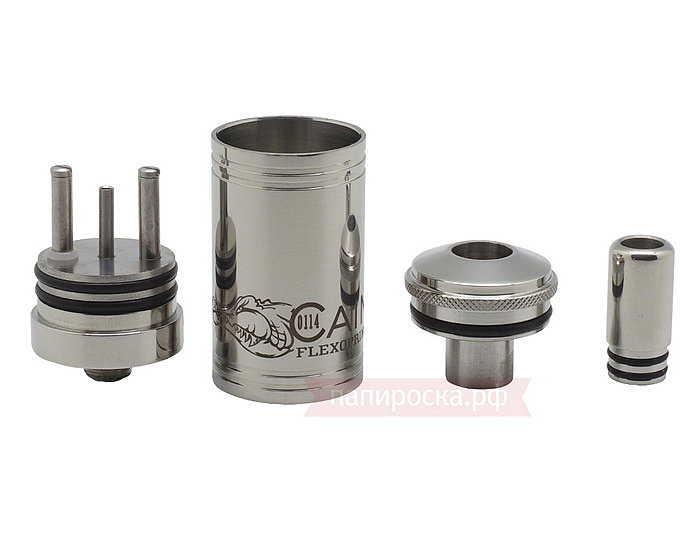 На крышке имеется накатка, чтобы было более удобно снимать ее с корпуса. Крышка держится на корпусе за счет одного уплотнительного кольца и имеет длинную шахту паропровода, которая не даст жидкости выливаться через мундштук. Тем самым можно не переживать за переливы при невертикальном положении атомайзера. На стальном корпусе нанесена гравировка с названием устройства. Внутренняя и наружная обработка корпуса очень хорошего качества.