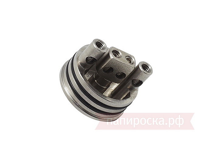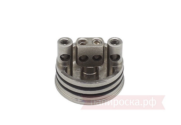 Перейдем к базе. База имеет три стойки, плюсовая сдвоенная. Очень внушительной глубины ванночка, что дает парить продолжительно время. Большие и ровные отверстия для спиралей (койлов), в эти отверстия поместятся многочисленные виды известных намоток (porn coil).