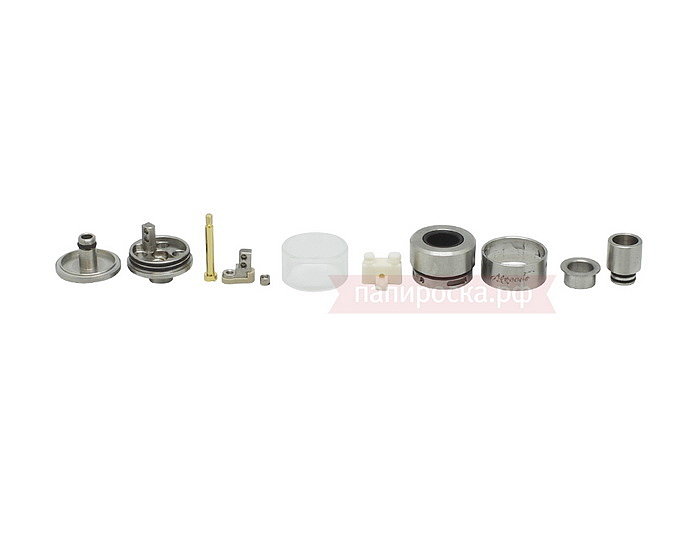 Сверху находится 510 дрип тип их нержавеющей стали. Он крепится на переходник на двух уплотнительных кольцах. Все кольца в данном бакомайзере очень плотные и качественные. Любые места соединения крепятся жестко.