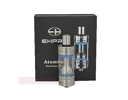 Внешним видом бакомайзер напоминает много устройств. Внешне Billow v2, хоть Ehpro Bachelor и не «пузатый», но дрип тип, накатки на крышке и кольце регулировки обдува и сам обдув схожи. Заправка тут выполнена как у TFV4. Бакомайзер вмещает в себя около 4 мл жидкости и при использовании одной спирали будет более экономный в расходе жидкости. Материалом корпуса является нержавеющая сталь, а вес составляет 75 грамм. Высота устройства 73,5 мм вместе с комплектный дрип типом (мундштуком), а диаметр 22 мм.