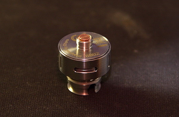 Верхняя часть прикручивается к куполу, а купол к базе. В данном бакомайзере можно регулировать подачу жидкости, что на сегодняшний день является «маст хевом» у каждого устройства. Данная функция позволяет удобно подбирать подачу при использовании жидкостей с разным процентом VG к PG. И избежать в будущем протечек. Не нужно заморачиваться с заменой ваты, ее количества. Нужно просто перекрывать подачу при жидком замесе и открывать при густом.