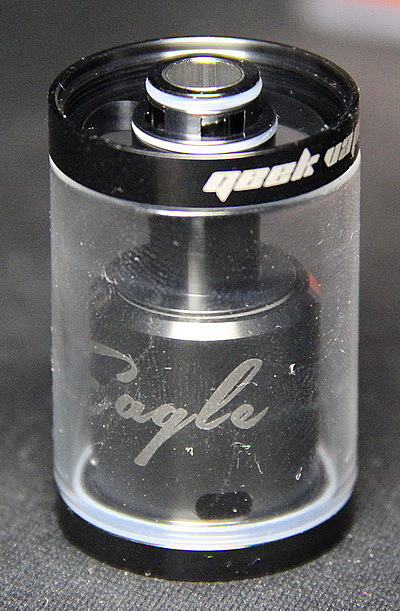 Как я писал выше, внешне атомайзер не может удивить своим уникальным дизайном. Так как даже люди, разбирающиеся в вэйпинге, не разберутся что это именно Eagle, не увидев название на куполе испарительной камеры. Весит бак 75 грамм. Без учета длины дрип типа, высота составляет 54,4 мм, а диаметр 25 мм. Данный бак радует своим большим объемом. Если у вас есть любимая жидкость, которую вы любите парить в большом количестве, то такие объемы вам подойдут и возможно будет хватать на целый день. Хотя если парить на предустановленных намотках, то на пол дня точно. Материалом корпуса является нержавеющая сталь, а данный бак выпускается в черном и стальном цветах.