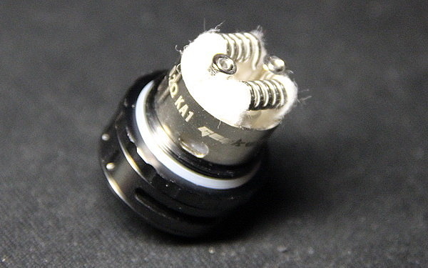 На куполе испарительной камеры есть четыре больших отверстия для подачи жидкости, а также лазерная гравировка с орлом и названием бака. Так как диаметр бака 25 мм, то в отличие от гриффина на 22 мм, очень густые жидкости отлично будут поступать к вате. Не будет медленных перетеканий, как на 22 мм версии. Под густыми жидкостями я имею ввиду соотношение VG 80 % и PG 20%.