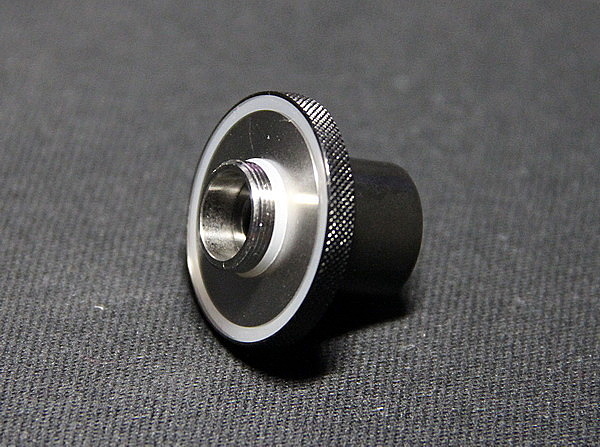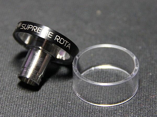 Сверху находится крышка, которая является съемной. Крышка перекрывает окна заправки и имеет очень удобную накатку. Сверху крышки устанавливается 510 дрип тип. Дрип тип имеет внутри суживающуюся конусную форму и выполнен из делрина. Так как он у основания имеет приемлемую толщину, то о его перегреве можно и не думать. Для герметичного соединения крышки с корпусом есть два уплотнительных кольца.
