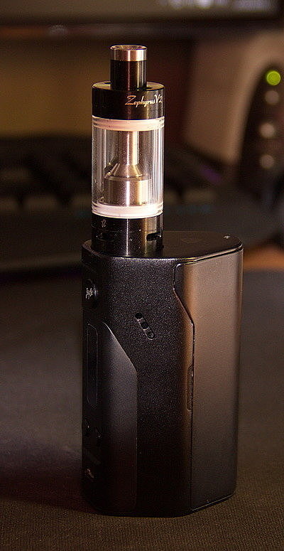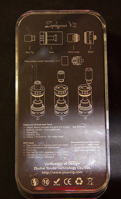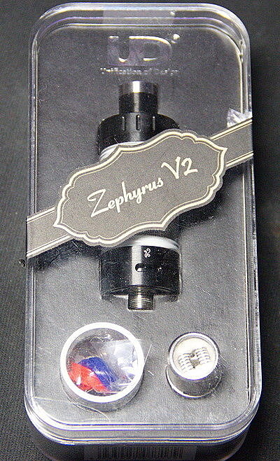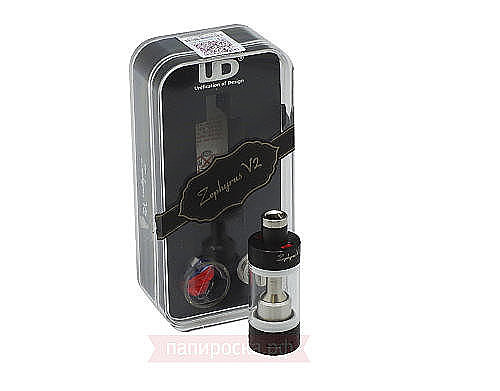 Материалом корпуса UD Zephyrus V2 является нержавеющая сталь. Весит всего 58,5 грамм. Высота составляет 61 мм, а диаметр классические 22 мм. Бакомайзер шикарно смотрится на черных боксмодах.