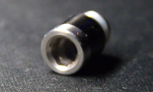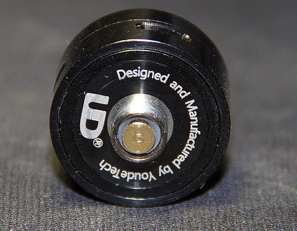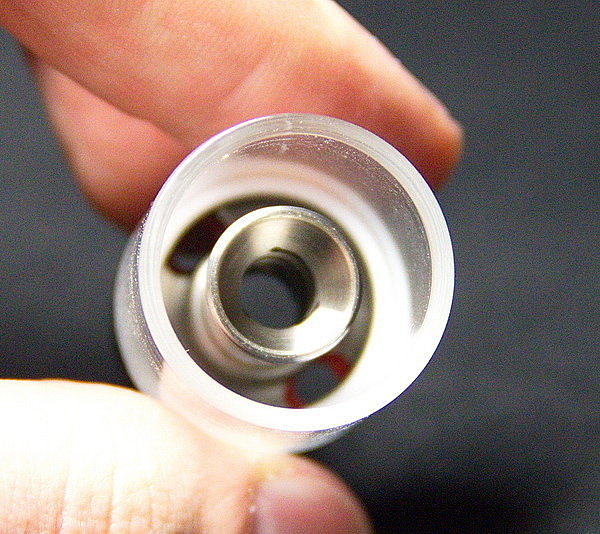 Сверху установлен 510 дрип тип. Он держится на сдвоенном уплотнительном кольце, а внутри имеет спиралевидную обработку. Которая, в теории, должна закручивать пар и увеличивать количество вкуса. Но используя другие дрип типы, я не заметил большой разницы.