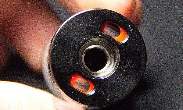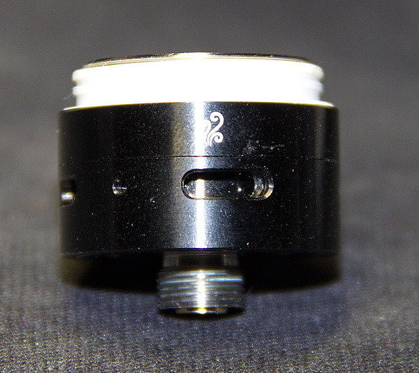 На основании есть съемное кольцо регулировки обдува. На кольце находятся четыре больших отверстия обдува и одно маленькое отверстие под аналоговую затяжку. Чтобы добиться аналоговой затяжки, нужно установить маленькое отверстие под гравировкой пара на торце основания. Я бы не стал использовать данный бак в режиме аналоговой затяжки. С такой большой по диаметру шахтой будет теряться весь смысл, и вы попросту получите гарик. Все-таки данный бак предназначен под свободную тягу.