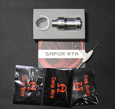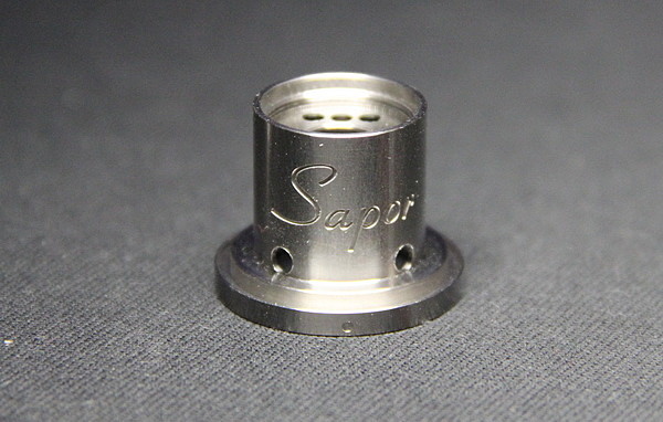 Что касается атомайзера, то он выполнен их нержавеющей стали и выпускается в стальном и черном цветах. Высота составляет 47,5 мм, а диаметр 25 мм, поэтому к данному атомайзеру необходимо иметь соответствующее устройство с посадкой в 25 мм. За счет увеличения габаритов увеличился и объем, теперь устройство вмещает в себя 4 мл жидкости. Весит Sapor RTA 25 65 грамм.