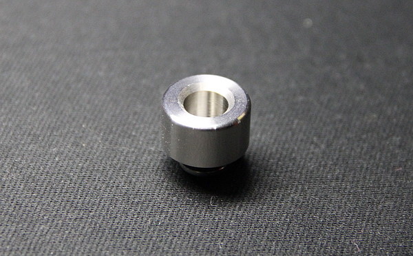 Сверху находится очень удобный 510 дрип тип. Дрип тип выполнен из нержавеющей стали и держится при помощи одного уплотнительного кольца. Казалось бы, что так как он выполнен из нержавейки, он должен прилично передавать тепло и соответственно греться. И да, он будет нагреваться если беспрерывно парить на протяжении пяти либо десяти минут. Лично я так часто парить не могу и если вы любитель посмоковать продолжительное время, то посоветую прикупить делриновый дриптипчик. Но даже менее пяти минут, дрип тип не греется, так как он достаточно толстый, и за счет своей толщины просто не успевает быстро передавать тепло. Отверстие у дрип типа равно внутреннему отверстию шахты, что увеличивает количество пара и делает затяжку супер свободной.