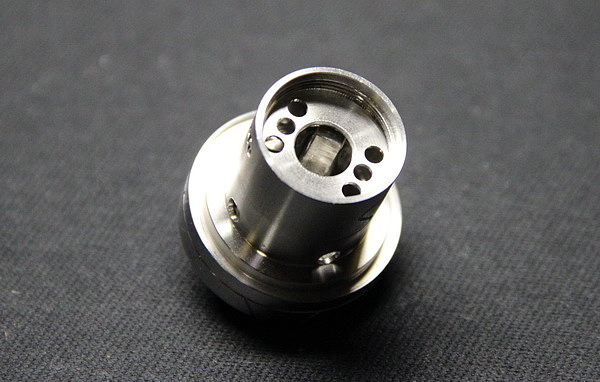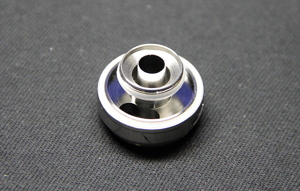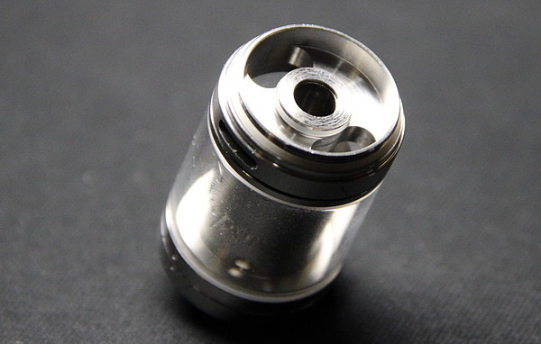 Очень понравились отверстия для заправки, они очень большие, что можно заправлять из любых бутылочек. Верхняя часть корпуса в которой проделаны отверстия для заправки имеет кольцо регулировки обдува. В донном устройстве, как я писал выше, сделан верхний обдув. Кольцо имеет два симметрично расположенных отверстия, а также удобную накатку.