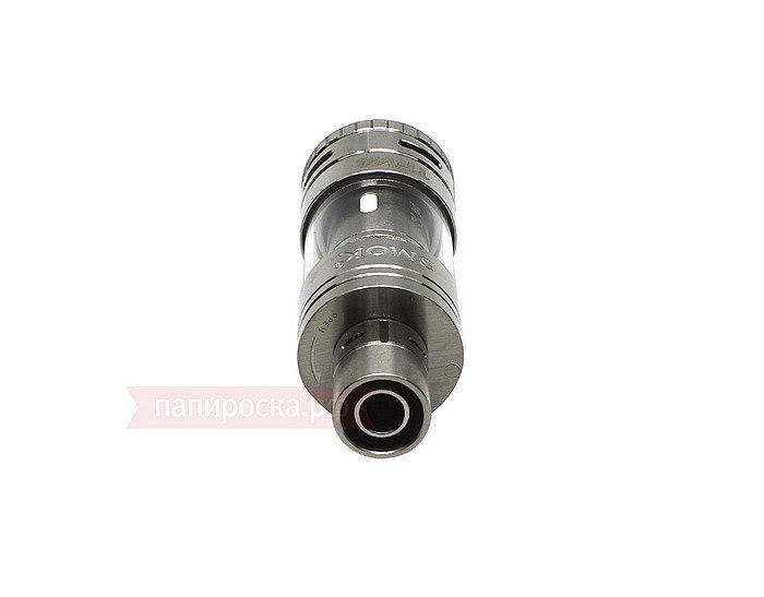 Атомайзер получился навалистым и большим. Высота с дрип типом (мундштук) составляет 69 мм, диаметр 25 мм, а вес 92 грамма. Так же данные размеры поспособствовали вместительности в 5 мл. Правда, на больших мощностях жижа просто «улетает». Корпус изготовлен из нержавеющей стали.