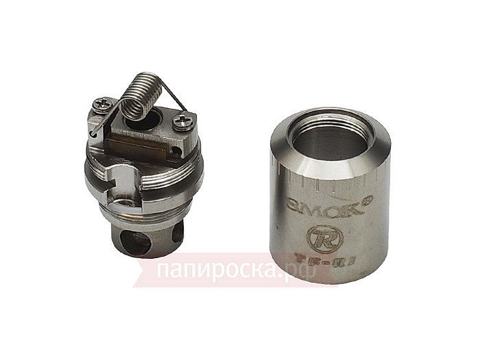 Когда первый раз видишь сменные испарители, поражаешься их большим размерам. Сменных испарителей для данного атомайзера большое количество. Рассмотрим испаритель на три спирали. Все три спирали вертикальные, что увеличивает как свободу затяжки, так и передачу вкуса. По бокам есть три больших окна для подачи жидкости. А внутри вата разделена металлической проставкой. Производитель рекомендует парить испаритель на 0,2 Ом на 40-130 Вт, а испаритель на 0,15 Ом от 40-140 Вт. Перед первым применением не забудьте дать испарителю пропитаться жидкостью. Само собой, что эти испарителя с легкостью "потянут" жидкости с максимальным процентом глицерина.