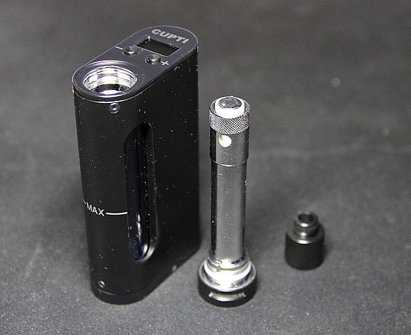 Внешне устройство смотрится и ощущается в руке намного приятнее, чем Nebox. Материалом корпуса является нержавеющая сталь, а вес всего набора составляет 230 грамм. В высоту Cupti TC 82 мм, в ширину 56 мм, а толщина 22,8 мм. В этот небольшой набор вмещается целых 5 мл жидкости, чего может хватать даже на целый день, конечно, все зависит от ваших пристрастий. Работает устройство от одного аккумулятора формата 18650 и может выдавать максимально мощность в 75 Вт. Если судить по старым платам от Kangertech, они не полностью высаживают аккумулятор, на старом Kbox mini происходит отказ работа уже в 3,5 вольта, что довольно мало. А при мощности в 75 Вт, вам точно не хватит одного купленного 18650. Поэтому если это ваше первое устройство, то к нему советую взять два аккумулятора, с током отдачи от 20 А. Для корректной работы устройства этот параметр аккумулятора очень важен, и не стоит на этом экономить.