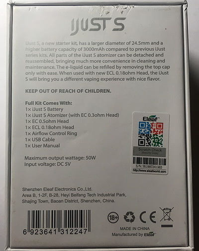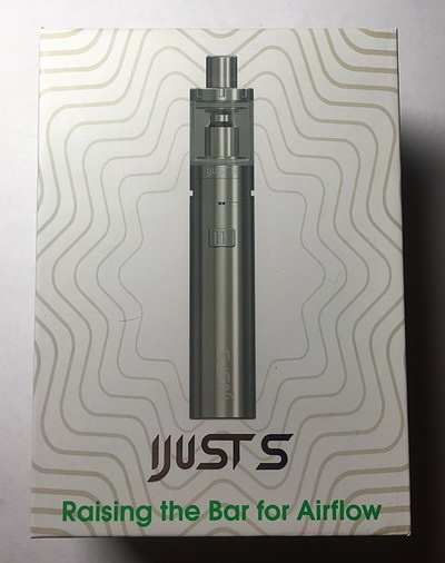 Стартовый набор упакован в белую коробку, где на лицевой стороне изображен iJust S.