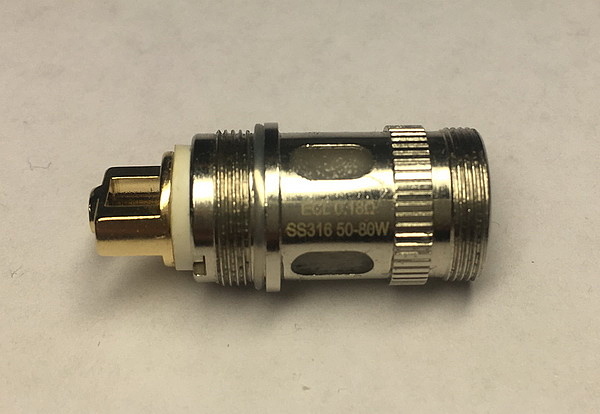 В комплекте есть три испарителя. Один установлен в атомайзер и имеет сопротивление в 0,3 Ома, выполнен из кантала. Второй испаритель имеет сопротивление 0,18 Ом и выполнен из нержавеющей стали, третий в 0,5 Ом и выполнен из кантала.