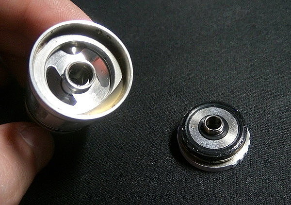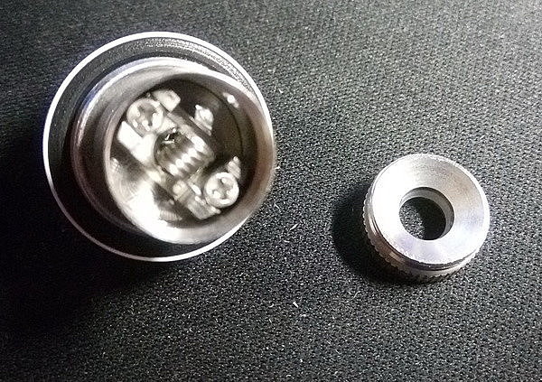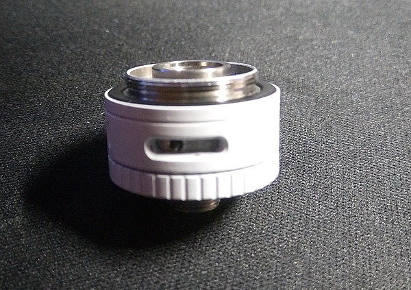 База атомайзера не претерпела изменений. Также есть накатка у основания, для удобного скручивания. Обдув регулируется вращением кольца регулировки, которое имеет три положения: два симметричных маленьких отверстия, которые дадут затяжку близкую к аналоговой, среднее по размеру отверстия и два самых больших отверстия, которые дадут свободную (кальянную) затяжку.