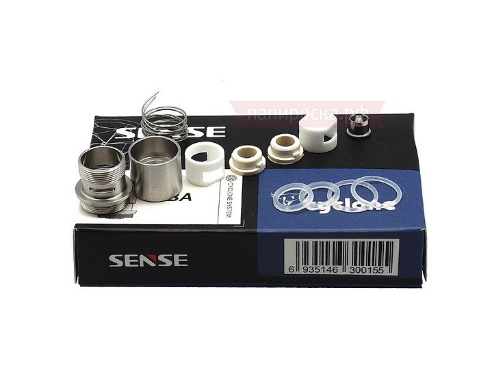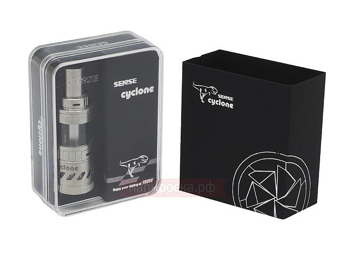 В комплектацию входят: танк «Sense Cyclone Subohm», запасная колба, два сменных испарителя: Один испаритель на 0,6 Ом, материалом проволоки является кантал. Второй испаритель на 0,2 Ома, материалом проволоки является нержавеющая сталь (SS316L).