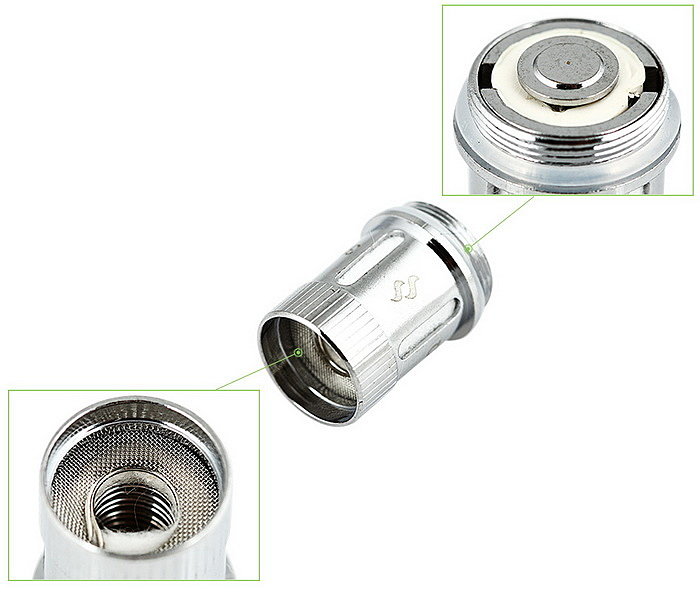 Комплектные испарители предназначены для парения на больших мощностях. Испаритель на 0,6 Ома можно использовать от 50 Вт до 150 Вт, в зависимости от процента VG в жидкости. Испаритель на 0,2 Ома предназначен для работы в режиме температурного контроля. Отверстия в испарителях под жидкость большие, тем самым можно не ограничивать себя в выборе жидкости.