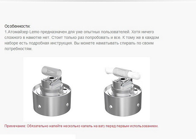 А вот с эстетической точки зрения ЛЕМО подвёл. Дизайн стандартный, а размер заставляет меня, как любителя миниатюрных вещей, содрогаться каждый раз когда я беру его в руку. Если же накрутить его на боксмоды типа Ipv или Сигелея, так это вобще будет что–то невообразимое. Но тут дело вкуса, и кому много пара, а кому компактность.