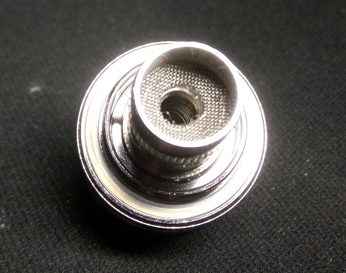 Корпус с шахтой являются одним целым. Сверху есть кольцо с накаткой, которое перекрывает заправочное окно. Кольцо имеет фиксатор в виде внутреннего шарика. Полностью открыв либо закрыв окно подачи, в момент фиксации происходит щелчок. Внутренний диаметр шахты достаточно большого размера, за счет этого увеличивается количество пара. Далее на корпусе есть съемное стекло из pyrex материала. Заправку также можно осуществлять снизу. Там есть два окна для заправки, но не забудьте перекрыть окно заправки сверху, иначе жидкость польется через это окно. Корпус замечательно промывается, хоть это и монолитная конструкция.